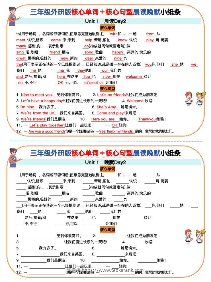 三年级英语上册外研版核心单词+核心句型默写小纸条(7页)taoke5天前发布关注298三年级英语上册外研版核心单词+核心句型默写小纸条(7页)此内容为付费资源,请付费后查看9.919.9月VIP免费永久VIP免费立即购买您当前未登录!建议登陆后购买,可保存购买订单格式pdf页数7 页大小813.47 KB付费资源 ——预览已结束,还剩5页未读——开通会员后可免费下载高清完整文档 © 版权声明文章版权归作者所有,未经允许请勿转载。THE END小学英语 喜欢就支持一下吧点赞8收藏