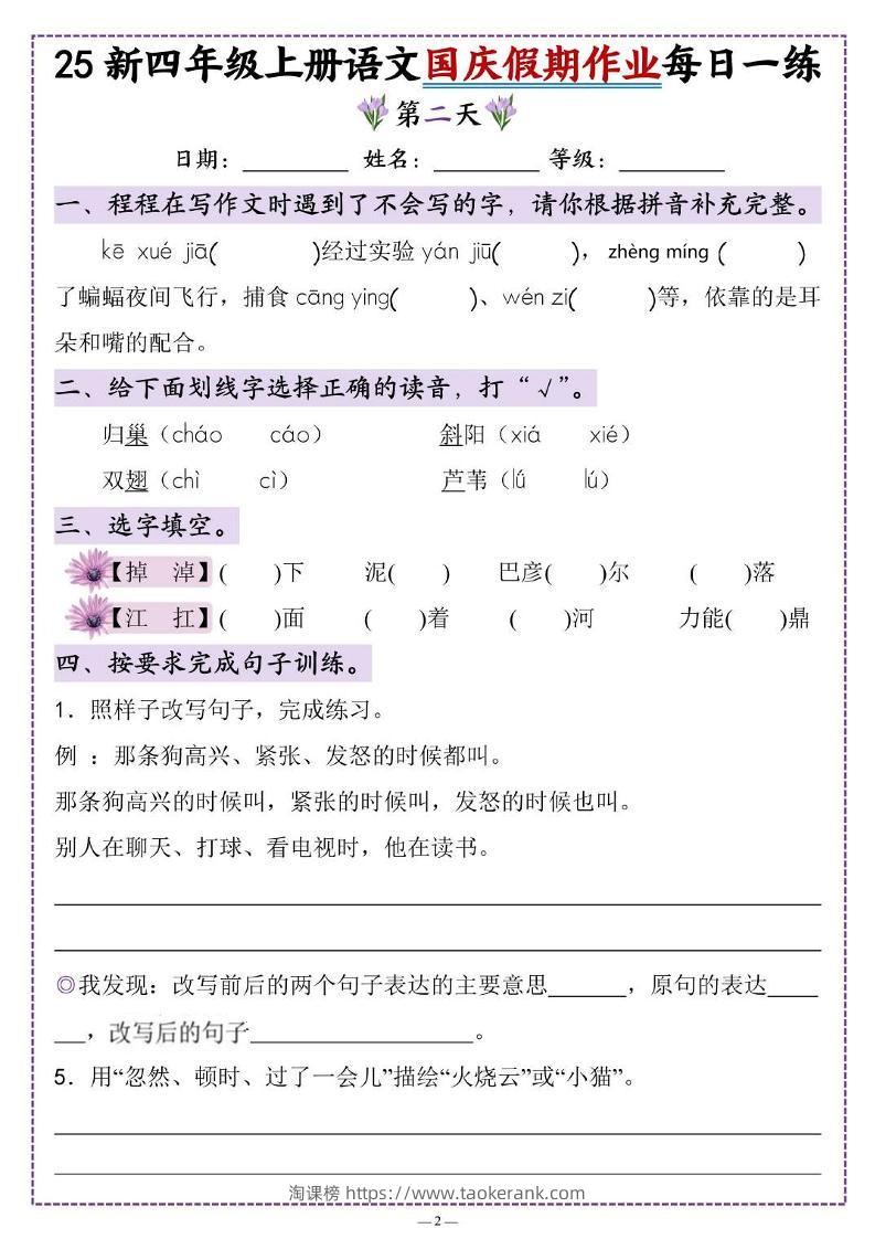 25新四上语文国庆假期作业每日一练(含答案16页)taoke4天前发布关注501525新四上语文国庆假期作业每日一练(含答案16页)此内容为付费资源,请付费后查看9.919.9月VIP免费永久VIP免费立即购买您当前未登录!建议登陆后购买,可保存购买订单格式pdf页数16 页大小9.72 MB付费资源 ——预览已结束,还剩14页未读——开通会员后可免费下载高清完整文档 © 版权声明文章版权归作者所有,未经允许请勿转载。THE END小学语文 喜欢就支持一下吧点赞15收藏