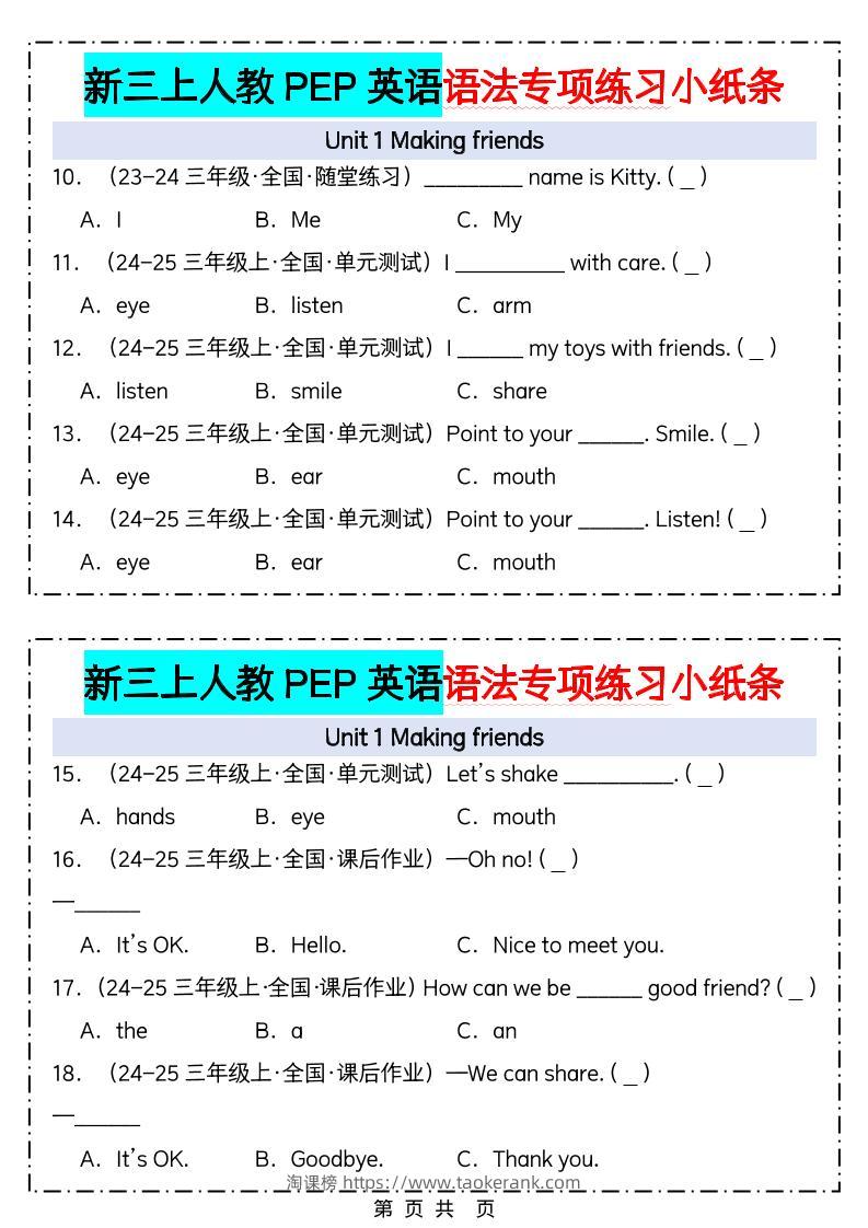 新三上人教PEP英语语法专项练习小纸条(含答案28页)taoke5小时前发布关注2611新三上人教PEP英语语法专项练习小纸条(含答案28页)此内容为付费资源,请付费后查看9.919.9月VIP免费永久VIP免费立即购买您当前未登录!建议登陆后购买,可保存购买订单格式pdf页数28 页大小793.30 KB付费资源 ——预览已结束,还剩26页未读——开通会员后可免费下载高清完整文档 © 版权声明文章版权归作者所有,未经允许请勿转载。THE END小学英语 喜欢就支持一下吧点赞11收藏