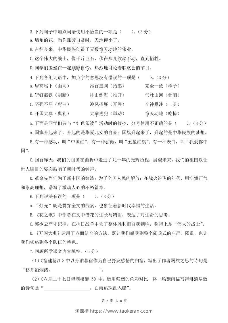 2025-2026六上语文第一次月考(第一二单元)(考试版A4)taoke12小时前发布关注2782025-2026六上语文第一次月考(第一二单元)(考试版A4)此内容为付费资源,请付费后查看9.919.9月VIP免费永久VIP免费立即购买您当前未登录!建议登陆后购买,可保存购买订单格式docx页数8 页大小80.90 KB付费资源 ——预览已结束,还剩6页未读——开通会员后可免费下载高清完整文档 © 版权声明文章版权归作者所有,未经允许请勿转载。THE END小学语文 喜欢就支持一下吧点赞8收藏