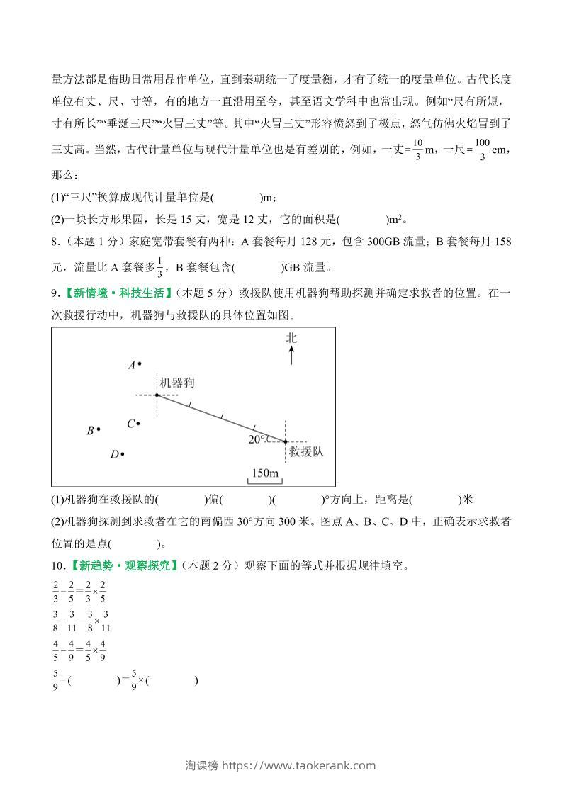25-26学年六上数学第一次月考(人教第1-2单元)(考试版A4)taoke3个月前发布关注57825-26学年六上数学第一次月考(人教第1-2单元)(考试版A4)此内容为付费资源,请付费后查看9.919.9月VIP免费永久VIP免费立即购买您当前未登录!建议登陆后购买,可保存购买订单格式pdf页数7 页大小718.28 KB付费资源 ——预览已结束,还剩5页未读——开通会员后可免费下载高清完整文档 © 版权声明文章版权归作者所有,未经允许请勿转载。THE END小学数学 喜欢就支持一下吧点赞8收藏