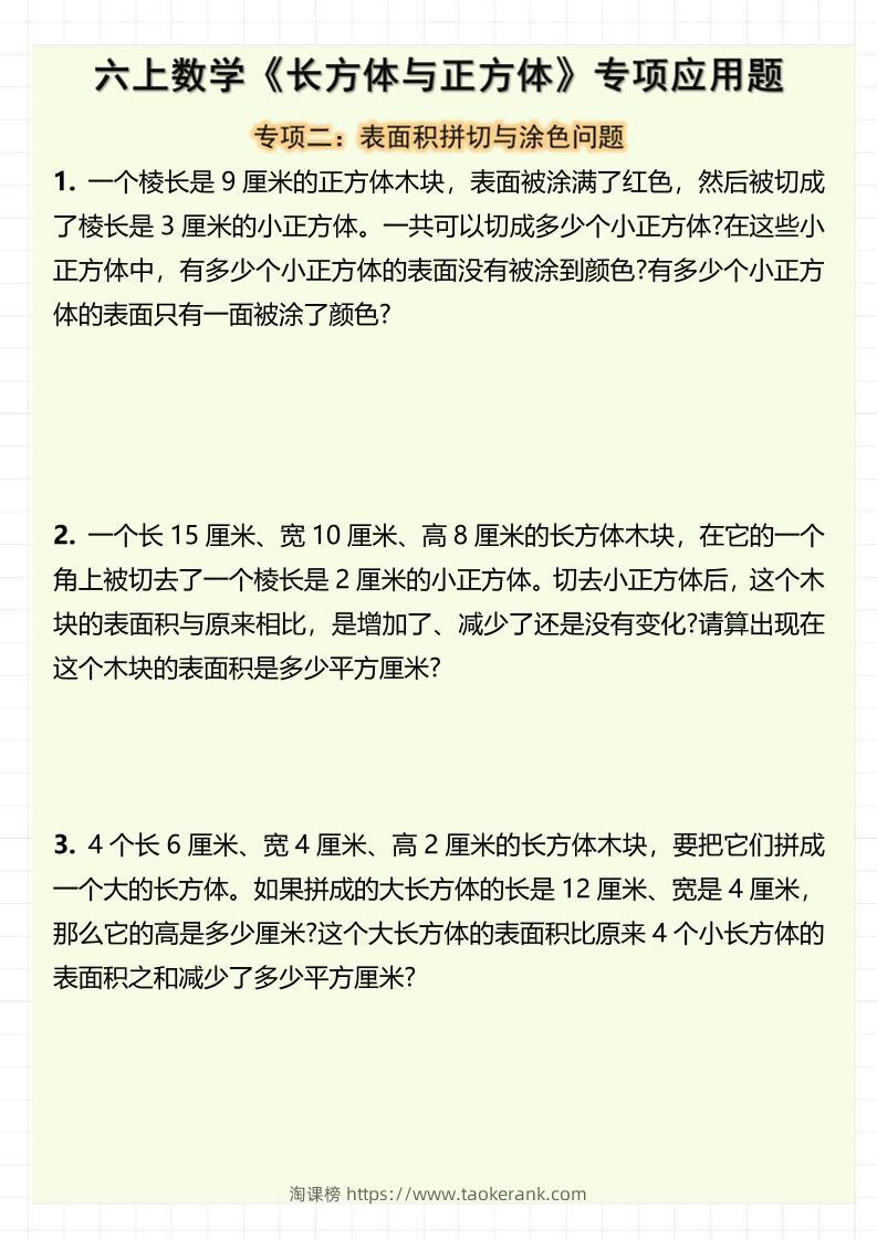 六上数学《长方体与正方体》专项应用题(含答案8页)taoke3个月前发布关注4212六上数学《长方体与正方体》专项应用题(含答案8页)此内容为付费资源,请付费后查看9.919.9月VIP免费永久VIP免费立即购买您当前未登录!建议登陆后购买,可保存购买订单格式pdf页数8 页大小878.65 KB付费资源 ——预览已结束,还剩6页未读——开通会员后可免费下载高清完整文档 © 版权声明文章版权归作者所有,未经允许请勿转载。THE END小学数学 喜欢就支持一下吧点赞12收藏