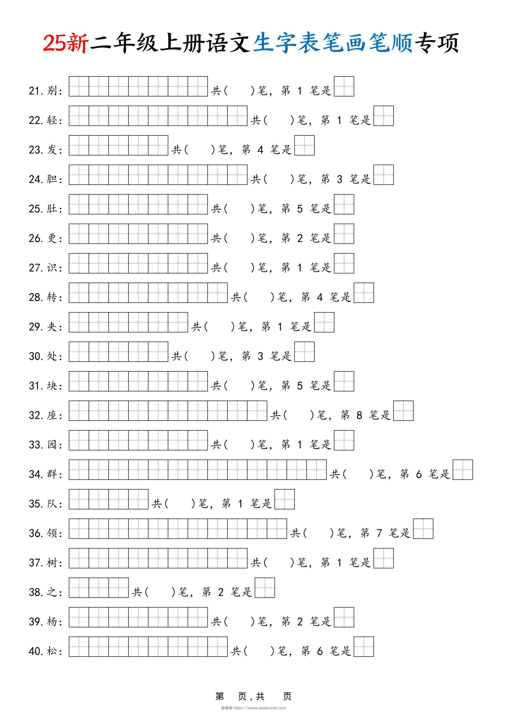 25新二上语文生字表笔画笔顺专项(13页)taoke前天发布关注301525新二上语文生字表笔画笔顺专项(13页)此内容为付费资源,请付费后查看9.919.9月VIP免费永久VIP免费立即购买您当前未登录!建议登陆后购买,可保存购买订单格式pdf页数13 页大小155.08 KB付费资源 ——预览已结束,还剩11页未读——开通会员后可免费下载高清完整文档 © 版权声明文章版权归作者所有,未经允许请勿转载。THE END小学语文 喜欢就支持一下吧点赞15收藏