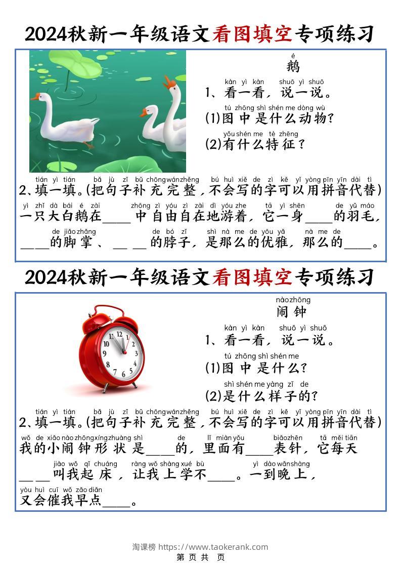 一年级上语文看图填空专项练习taoke23天前发布关注387一年级上语文看图填空专项练习此内容为付费资源,请付费后查看9.919.9月VIP免费永久VIP免费立即购买您当前未登录!建议登陆后购买,可保存购买订单格式pdf页数18 页大小1.95 MB付费资源 ——预览已结束,还剩16页未读——开通会员后可免费下载高清完整文档 © 版权声明文章版权归作者所有,未经允许请勿转载。THE END小学语文 喜欢就支持一下吧点赞7收藏