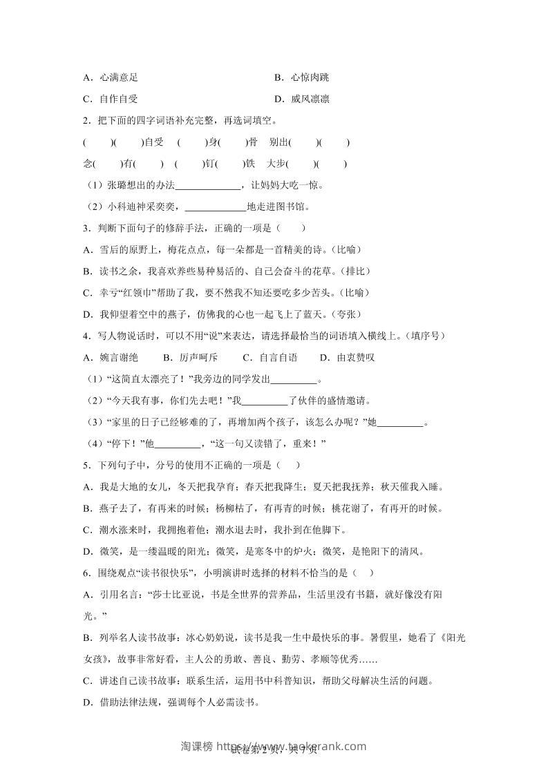 六上语文期中素养测评·基础卷01(统编版)taoke18小时前发布关注4715六上语文期中素养测评·基础卷01(统编版)此内容为付费资源,请付费后查看9.919.9月VIP免费永久VIP免费立即购买您当前未登录!建议登陆后购买,可保存购买订单格式pdf页数17 页大小554.94 KB付费资源 ——预览已结束,还剩15页未读——开通会员后可免费下载高清完整文档 © 版权声明文章版权归作者所有,未经允许请勿转载。THE END小学语文 喜欢就支持一下吧点赞15收藏