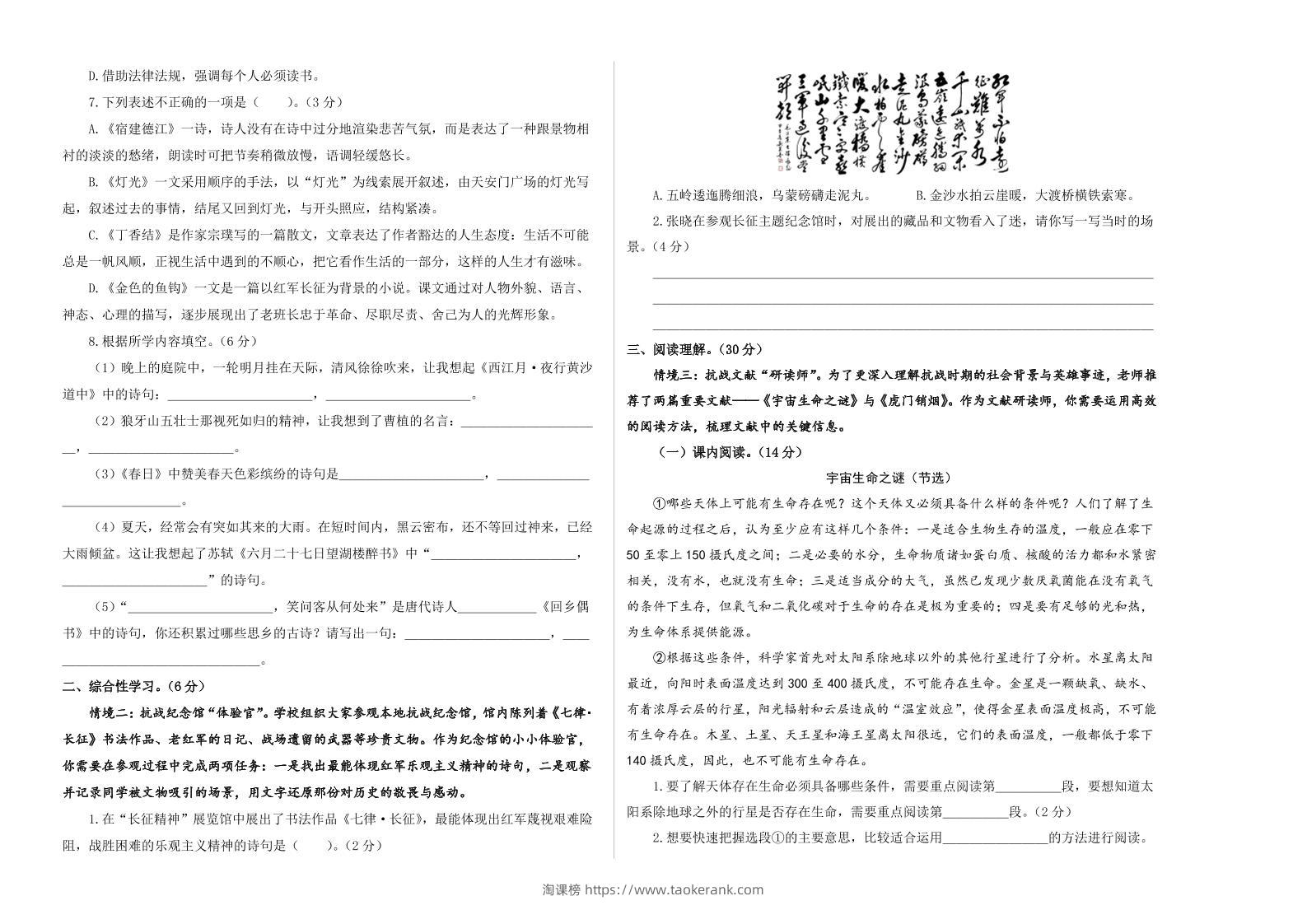 25-26学年六年级上语文期中素养测评基础卷(一)taoke12天前发布关注51825-26学年六年级上语文期中素养测评基础卷(一)此内容为付费资源,请付费后查看9.919.9月VIP免费永久VIP免费立即购买您当前未登录!建议登陆后购买,可保存购买订单格式pdf页数11 页大小782.97 KB付费资源 ——预览已结束,还剩9页未读——开通会员后可免费下载高清完整文档 © 版权声明文章版权归作者所有,未经允许请勿转载。THE END小学语文 喜欢就支持一下吧点赞8收藏