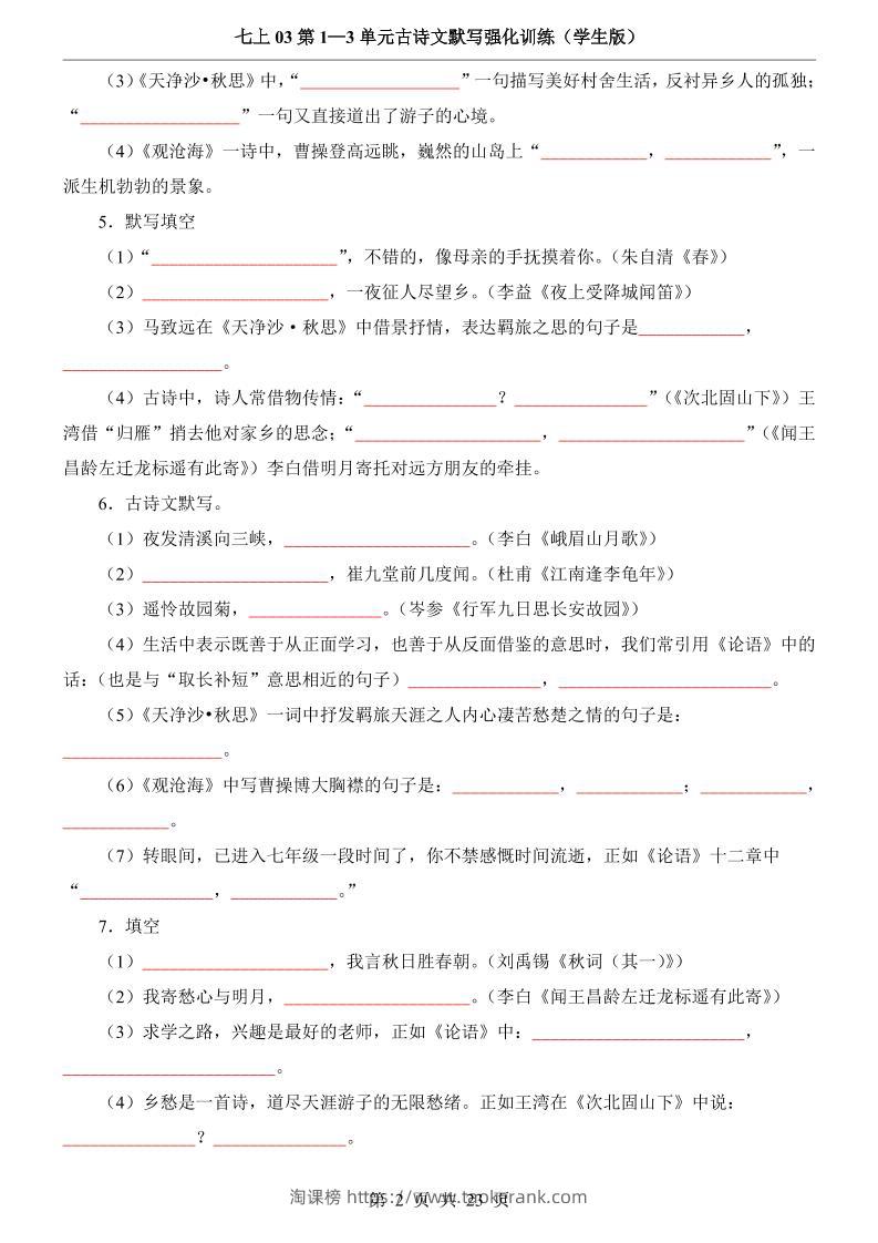七年级上语文第1-3单元古诗文默写强化训练taoke昨天发布关注4314七年级上语文第1-3单元古诗文默写强化训练此内容为付费资源,请付费后查看9.919.9月VIP免费永久VIP免费立即购买您当前未登录!建议登陆后购买,可保存购买订单格式pdf页数23 页大小776.31 KB付费资源 ——预览已结束,还剩21页未读——开通会员后可免费下载高清完整文档 © 版权声明文章版权归作者所有,未经允许请勿转载。THE END初中语文 喜欢就支持一下吧点赞14收藏