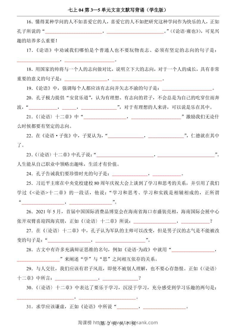 七年级上语文第3-5单元文言文默写背诵taoke昨天发布关注4814七年级上语文第3-5单元文言文默写背诵此内容为付费资源,请付费后查看9.919.9月VIP免费永久VIP免费立即购买您当前未登录!建议登陆后购买,可保存购买订单格式pdf页数7 页大小378.79 KB付费资源 ——预览已结束,还剩5页未读——开通会员后可免费下载高清完整文档 © 版权声明文章版权归作者所有,未经允许请勿转载。THE END初中语文 喜欢就支持一下吧点赞14收藏