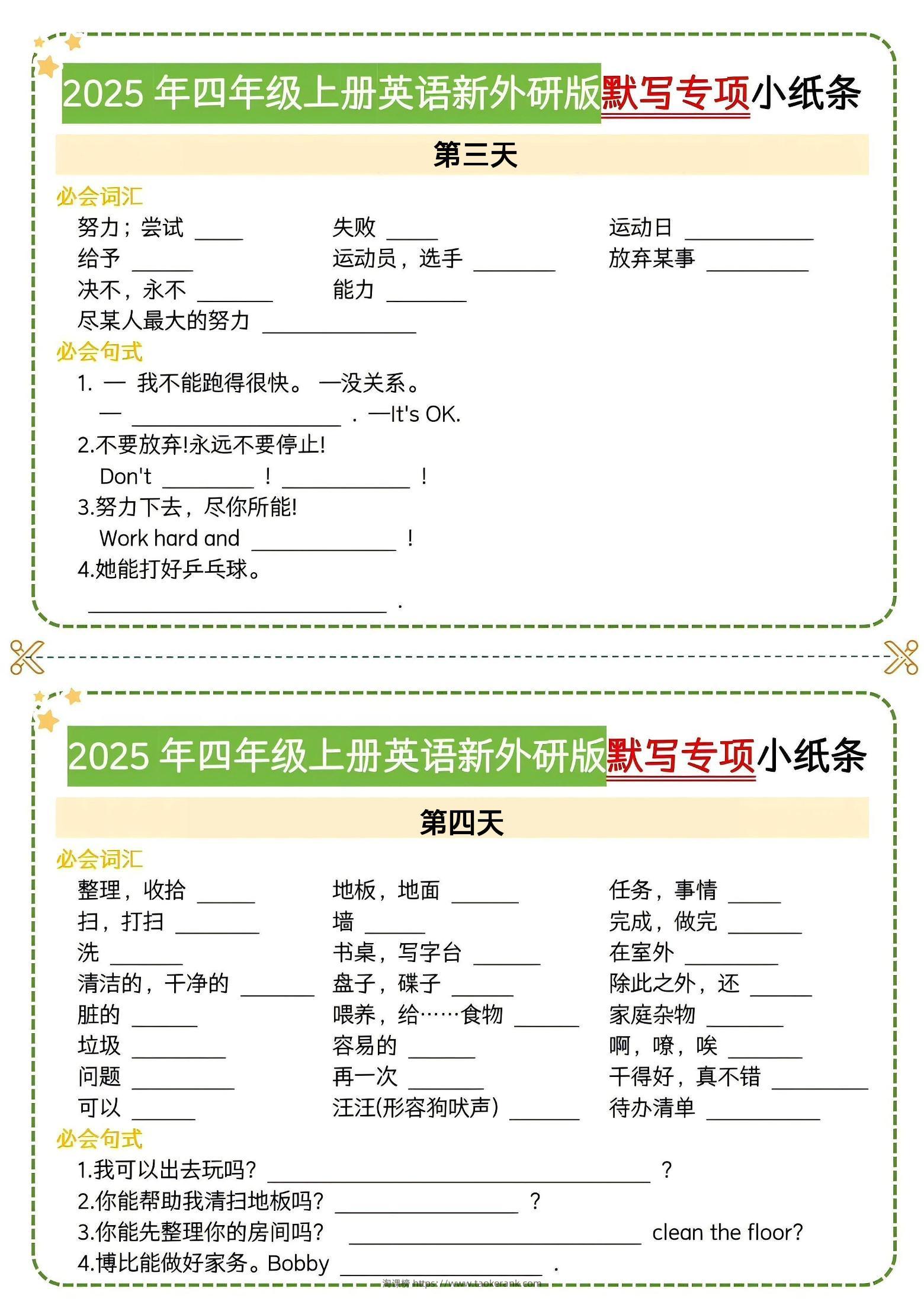 四年级上英语默写专项小纸条《外研版》taoke2小时前发布关注2211四年级上英语默写专项小纸条《外研版》此内容为付费资源,请付费后查看9.919.9月VIP免费永久VIP免费立即购买您当前未登录!建议登陆后购买,可保存购买订单格式pdf页数5 页大小3.02 MB付费资源 ——预览已结束,还剩3页未读——开通会员后可免费下载高清完整文档 © 版权声明文章版权归作者所有,未经允许请勿转载。THE END小学英语 喜欢就支持一下吧点赞11收藏