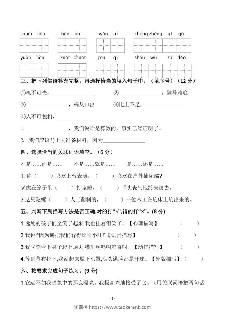 四年级上语文第六单元测试卷2taoke9天前发布关注299四年级上语文第六单元测试卷2此内容为付费资源,请付费后查看9.919.9月VIP免费永久VIP免费立即购买您当前未登录!建议登陆后购买,可保存购买订单格式pdf页数7 页大小2.24 MB付费资源 ——预览已结束,还剩5页未读——开通会员后可免费下载高清完整文档 © 版权声明文章版权归作者所有,未经允许请勿转载。THE END小学语文 喜欢就支持一下吧点赞9收藏