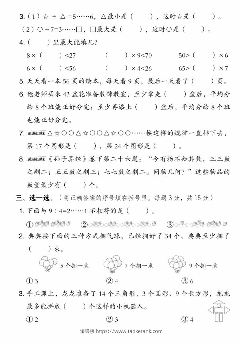 二年级上数学第六单元拔尖测试卷1《苏教版》taoke5天前发布关注5011二年级上数学第六单元拔尖测试卷1《苏教版》此内容为付费资源,请付费后查看9.919.9月VIP免费永久VIP免费立即购买您当前未登录!建议登陆后购买,可保存购买订单格式pdf页数5 页大小3.69 MB付费资源 ——预览已结束,还剩3页未读——开通会员后可免费下载高清完整文档 © 版权声明文章版权归作者所有,未经允许请勿转载。THE END小学数学 喜欢就支持一下吧点赞11收藏