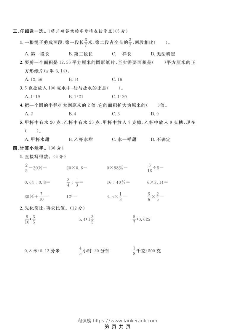 六年级上数学期末拔尖测试卷5《冀教版》taoke54天前发布关注259六年级上数学期末拔尖测试卷5《冀教版》此内容为付费资源,请付费后查看9.919.9月VIP免费永久VIP免费立即购买您当前未登录!建议登陆后购买,可保存购买订单格式pdf页数5 页大小11.88 MB付费资源 ——预览已结束,还剩3页未读——开通会员后可免费下载高清完整文档 © 版权声明文章版权归作者所有,未经允许请勿转载。THE END小学数学 喜欢就支持一下吧点赞9收藏