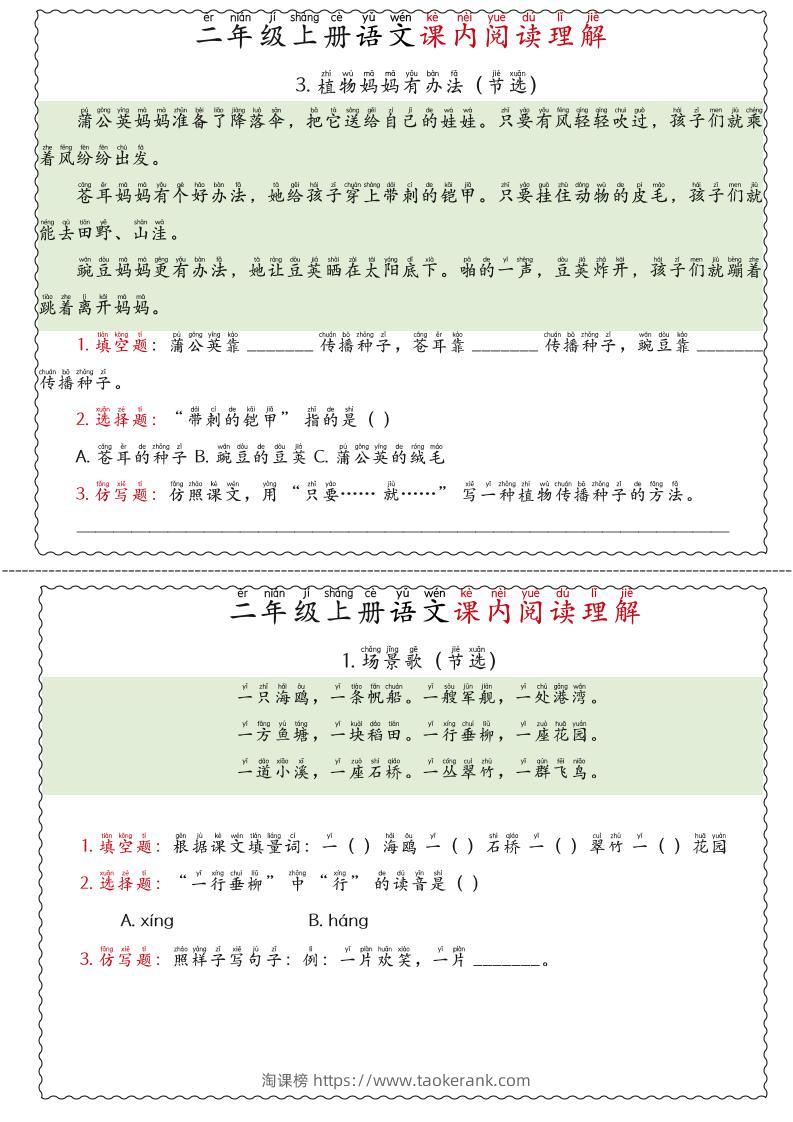 二年级上语文期末《课内阅读理解》专项练习taoke昨天发布关注3313二年级上语文期末《课内阅读理解》专项练习此内容为付费资源,请付费后查看9.919.9月VIP免费永久VIP免费立即购买您当前未登录!建议登陆后购买,可保存购买订单格式pdf页数23 页大小1.25 MB付费资源 ——预览已结束,还剩21页未读——开通会员后可免费下载高清完整文档 © 版权声明文章版权归作者所有,未经允许请勿转载。THE END小学语文 喜欢就支持一下吧点赞13收藏