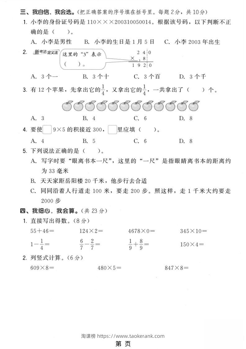 三年级上数学期末模拟测试卷6《人教版》taoke13小时前发布关注3514三年级上数学期末模拟测试卷6《人教版》此内容为付费资源,请付费后查看9.919.9月VIP免费永久VIP免费立即购买您当前未登录!建议登陆后购买,可保存购买订单格式pdf页数5 页大小2.89 MB付费资源 ——预览已结束,还剩3页未读——开通会员后可免费下载高清完整文档 © 版权声明文章版权归作者所有,未经允许请勿转载。THE END小学数学 喜欢就支持一下吧点赞14收藏