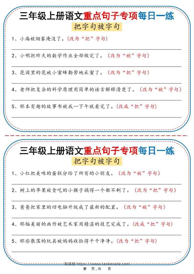 三年级上语文重点句子专项每日一练taoke41天前发布关注407三年级上语文重点句子专项每日一练此内容为付费资源,请付费后查看9.919.9月VIP免费永久VIP免费立即购买您当前未登录!建议登陆后购买,可保存购买订单格式pdf页数36 页大小1.83 MB付费资源 ——预览已结束,还剩34页未读——开通会员后可免费下载高清完整文档 © 版权声明文章版权归作者所有,未经允许请勿转载。THE END小学语文 喜欢就支持一下吧点赞7收藏
