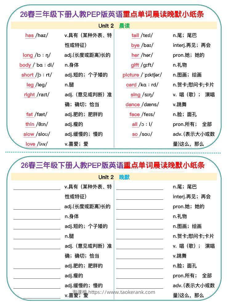 新三下人教pep英语单词晨读晚默小纸条taoke昨天发布关注2815新三下人教pep英语单词晨读晚默小纸条此内容为付费资源,请付费后查看9.919.9月VIP免费永久VIP免费立即购买您当前未登录!建议登陆后购买,可保存购买订单格式pdf页数6 页大小646.17 KB付费资源 ——预览已结束,还剩4页未读——开通会员后可免费下载高清完整文档 © 版权声明文章版权归作者所有,未经允许请勿转载。THE END小学英语 喜欢就支持一下吧点赞15收藏