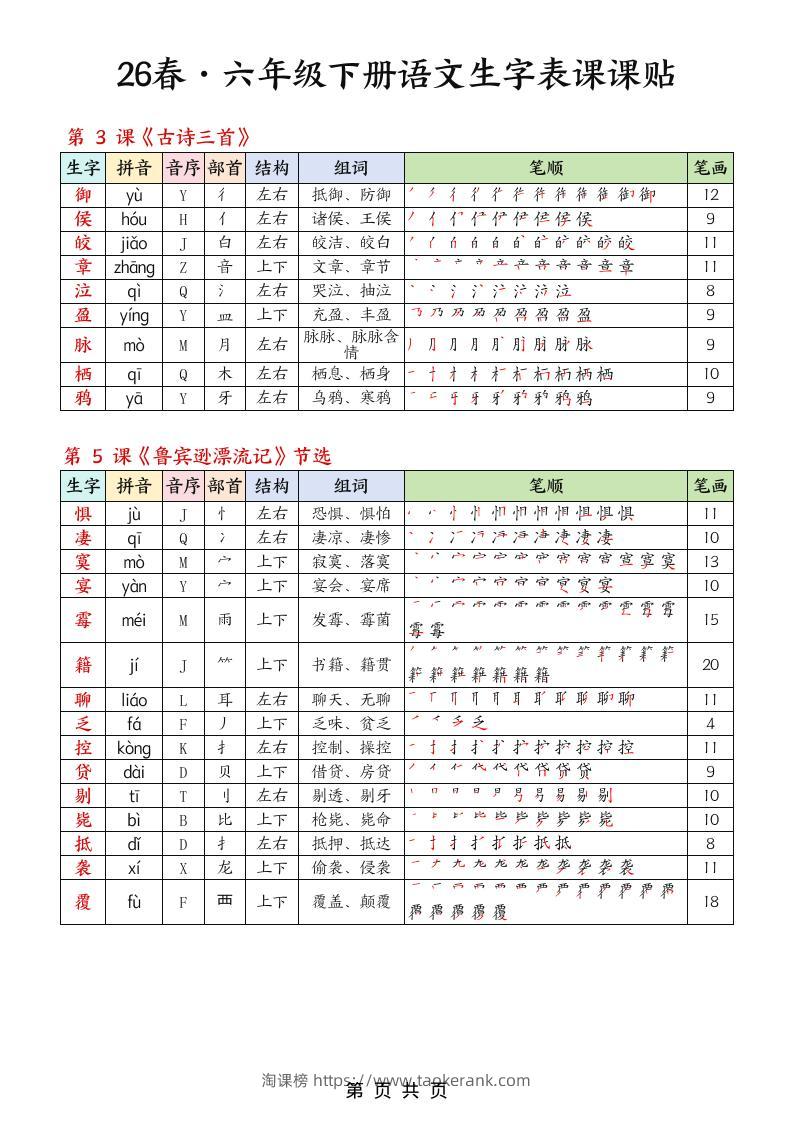 26春六下语文生字课课贴5页taoke7小时前发布关注391026春六下语文生字课课贴5页此内容为付费资源,请付费后查看9.919.9月VIP免费永久VIP免费立即购买您当前未登录!建议登陆后购买,可保存购买订单格式pdf页数5 页大小1.12 MB付费资源 ——预览已结束,还剩3页未读——开通会员后可免费下载高清完整文档 © 版权声明文章版权归作者所有,未经允许请勿转载。THE END小学语文 喜欢就支持一下吧点赞10收藏