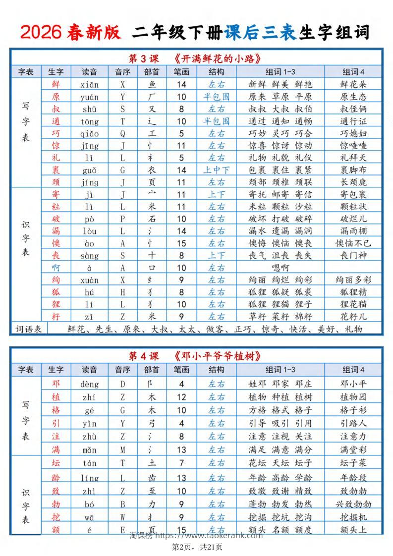 二年级下语文2026春课后三表生字组词taoke7小时前发布关注2811二年级下语文2026春课后三表生字组词此内容为付费资源,请付费后查看9.919.9月VIP免费永久VIP免费立即购买您当前未登录!建议登陆后购买,可保存购买订单格式pdf页数21 页大小8.25 MB付费资源 ——预览已结束,还剩19页未读——开通会员后可免费下载高清完整文档 © 版权声明文章版权归作者所有,未经允许请勿转载。THE END小学语文 喜欢就支持一下吧点赞11收藏